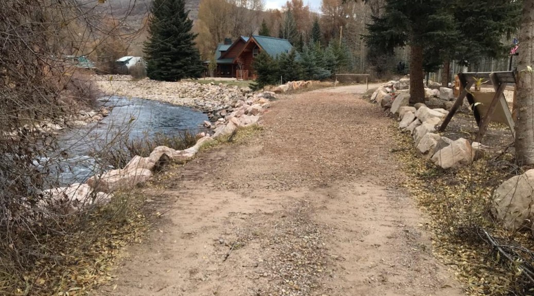 The good news is that the owner of the river bed has agreed to return the river to its approximate course of several years ago and is in the process of obtaining the proper permits. It is his expectation to begin work when the water reaches its annual low point- around the beginning of October. At that time, the road will be returned to (approximately) it’s original location and the shoreline hardened against future erosion.